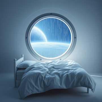 Ultra-minimal space ambient at 60 BPM; long, evolving synth pads breathing in slow waves, softly synced arpeggiators like distant telemetry, Airy reverb washes and far-off sub-bass swells suggest the ship’s hum; sparse glitches and noise textures drift through the stereo field, Gradual filter sweeps open and close to mirror awakening, building from a single pulsing tone into a wide, weightless bed, then dissolving back to a faint halo for a gentle fade-out, slow, sleep, noise, relaxing, ambient, minimal, electronic, gentle
