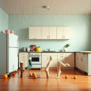 industrial, carnival music, aggressive, funny, dark, happy, aggressive male voice, soft female voice