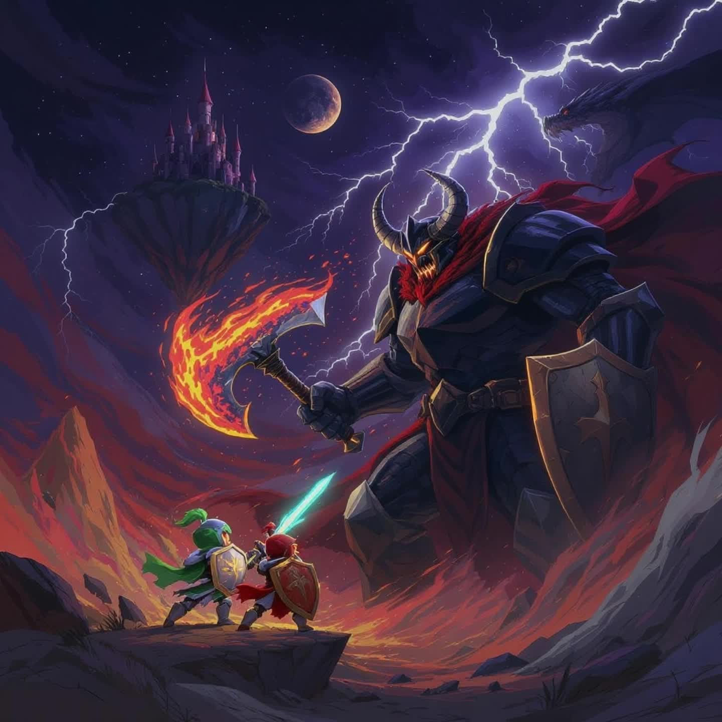 chiptune with some orchestral mixed, 16-bit, video game, electronic symphony, boss music, jrpg-style boss battle theme, bass, struggle, a fight for your life, hope for victory, keygen, battle, epic, j-rock, loud and epic choir chanting, hopeful and epic, start with chiptune then slowly add more orchestral beats