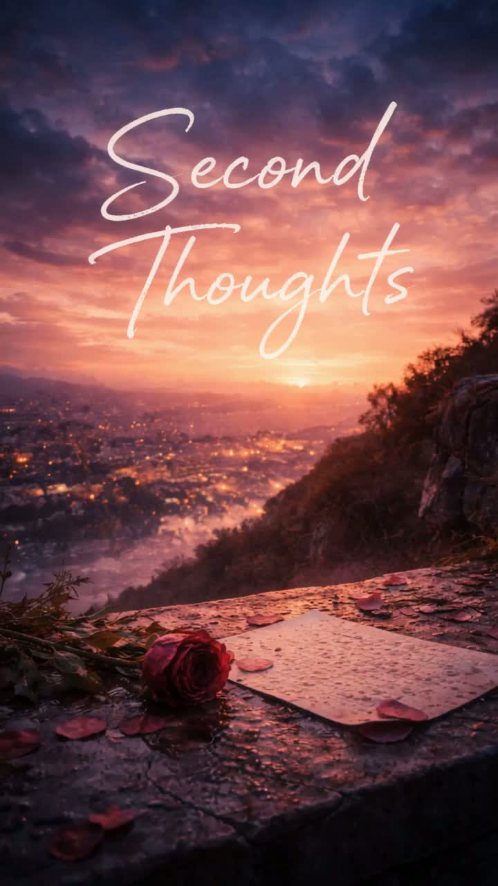 Cinematic **emo-pop / alt-rock ballad** with a slow-build that feels like credits rolling on something beautiful, Starts near-silent: **felt piano** playing sparse, aching chords, a **soft tape-hiss pad**, and distant **rainy-room ambience**, Verse 1 stays intimate with **close-mic vocals**, light **fingerpicked electric guitar** (clean, chorusy), and a low **808 sub** that barely breathes, Pre-chorus adds **muted kick**, **snare rim taps**, and **warm synth strings** swelling like a throat-tight sigh, Chorus lifts into widescreen: **full drum kit** (kick, snare, open hats), **layered guitars** (clean + lightly overdriven), and **choir-like vocal stacks** behind the lead, not loud, just haunting, Bridge drops back to piano + pad, then a final chorus explodes with **crash cymbals**, **bass guitar**, and a **single lead guitar line** that trembles like a goodbye, ending on a long, unresolved chord that fades like a message never answered