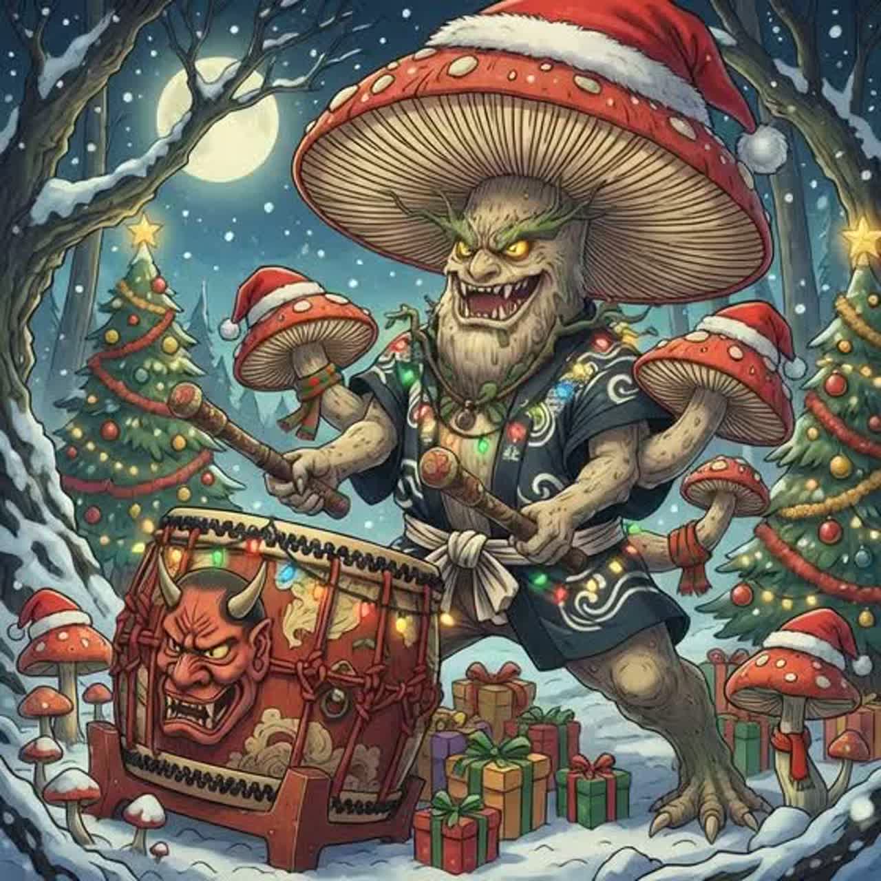 jungle, christmas, Japanese festival pop, enka fusion, comic duet, energetic female vocal, matsuri percussion, festival EDM, traditional Japanese instruments, call and response, uptempo, joyful, theatrical performance, bon-odori, enka, matsuri, female vocal, comedic enka, high-energy, taiko, festival