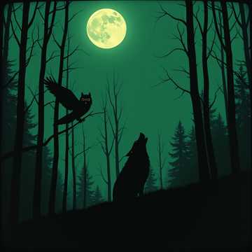 Dark, moody, scary feeling, accoustic musical instruments only, deeper voices, campfire sounds, Czech language
