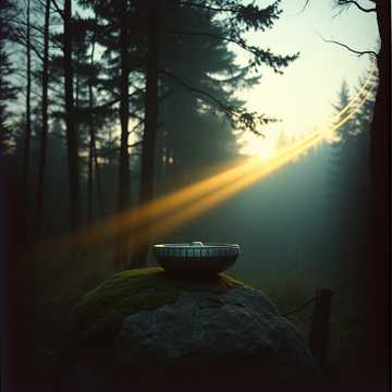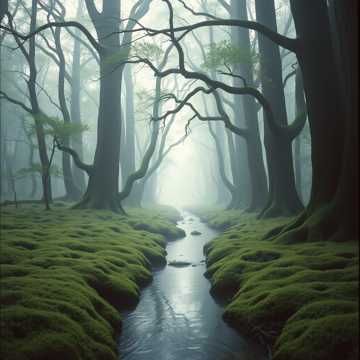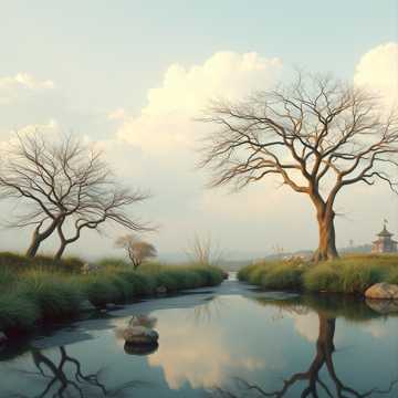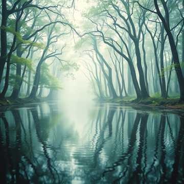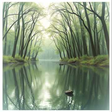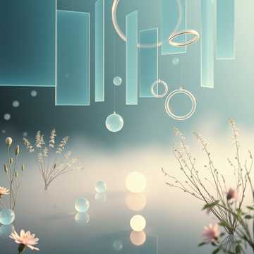 Floating, pastel impressionist harmonies; soft handpan ostinatos ripple under airy pan flute motifs, Debussy-style extended chords spread in gentle arpeggios, with subtle synth pads for halo-like sustain, Dynamics stay tender and slow-building, letting silence breathe between phrases for a meditative, nature-soaked calm, gentle, meditation, soft