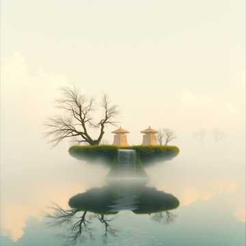 Soft impressionist chamber ambience with handpan patterns like raindrops and airy pan flute leads, Gentle piano voicings blur in reverb, subtle strings swell and fade like mist, The energy stays low and spacious, slowly blooming then settling back into a tranquil drone, meditation, soft, gentle