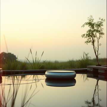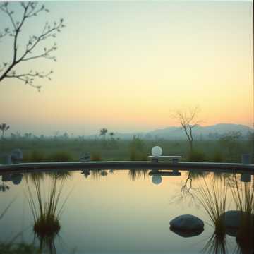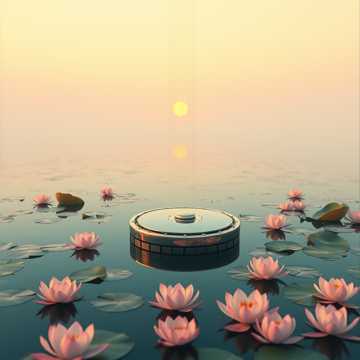 Floating ambient soundscape with airy string pads, spacious handpan patterns, and subtle koto‑like plucks, Very slow, meditative arc that gently swells and recedes; long reverb tails, soft low drones, and faint temple bell accents, Perfect for deep breathing and mindfulness, with dynamics kept smooth and undramatic so the listener drifts rather than focuses, soft, meditation