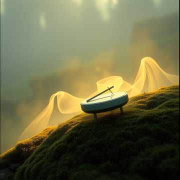 Airy ambient wash with handpan patterns in a slow, breathing tempo; soft xylophone glimmers on top, Gentle flute phrases drift in and out, harp arpeggios shimmer like light on water, Long reverbs, very wide stereo image, patient build that never fully crests, inviting deep meditative focus, magical, meditation, soft, harp