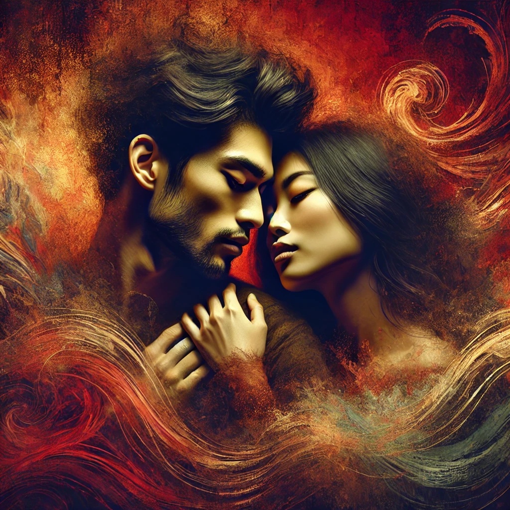 FEMALE slow, sultry melody built on a dark, hypnotic rhythm; low, breathy vocals dripping with desire; minor chords blending piano and strings; subtle bass throbs, hinting at forbidden longing, Ethere