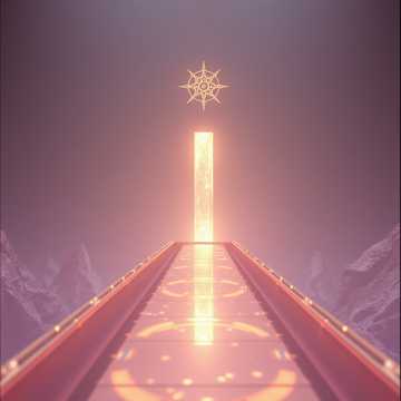 A slow-to-mid tempo instrumental finale built as a first stand—unyielding resolve manifested through perfect control, repetition, and luminous authority, Guitars are bold and declarative, locking into a simple, iconic riff that repeats with absolute conviction, growing heavier and more radiant through layered harmonics, octave reinforcement, and controlled distortion rather than complexity, Bass anchors the track as an immovable foundation, steady and unwavering, reinforcing the rail with calm triplet-informed momentum that feels eternal rather than urgent, Drums are disciplined and ceremonial: massive, grounded kick and snare patterns with precise, restrained subdivision work that adds shimmer and motion without aggression, evoking patience, endurance, and inevitable strength, Synth elements are radiant and symbolic—bright, glass-like arpeggios, sustained metallic pads, and sharp pulses that feel holy without sentimentality, shining through the darkness like law made visible