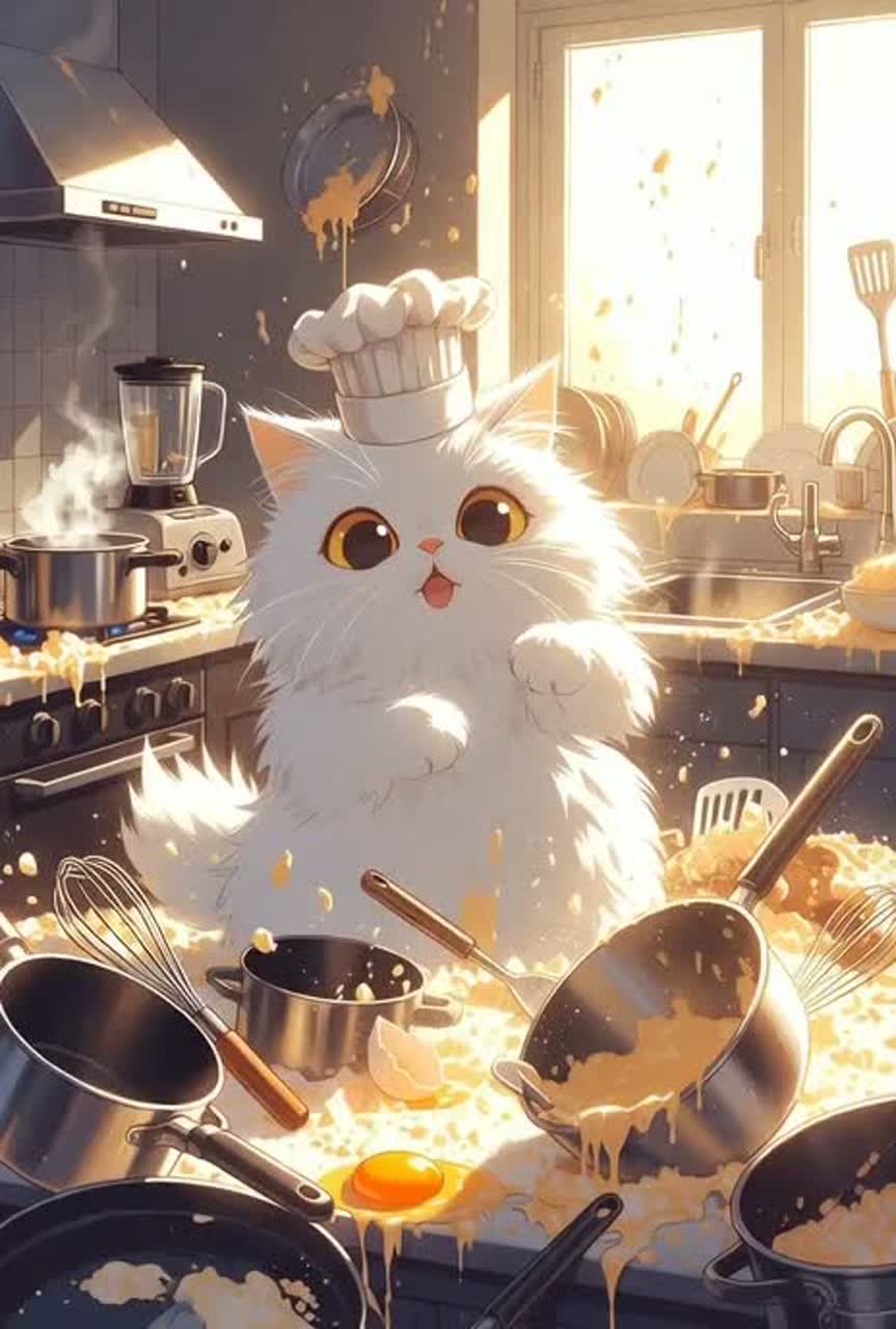The track opens with yodeling over chaotic, polyrhythmic percussion featuring clanking kitchen utensils, Steel drums weave offbeat melodies, surreal cartoonish effects accentuate transitions, and lush reverbs amplify the sonic space, Feline-inspired vocal textures overlap around the squeaky female lead