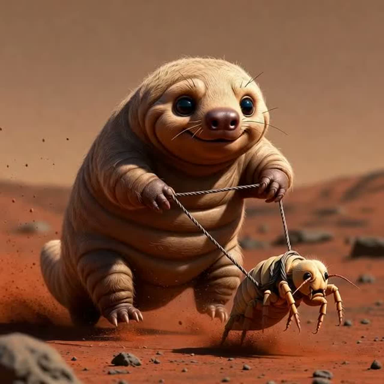 Fast tempo pop-rock, driving drums, bright guitars, melodic but sarcastic vocal delivery, playful sci-fi comedy energy, no rap phrasing