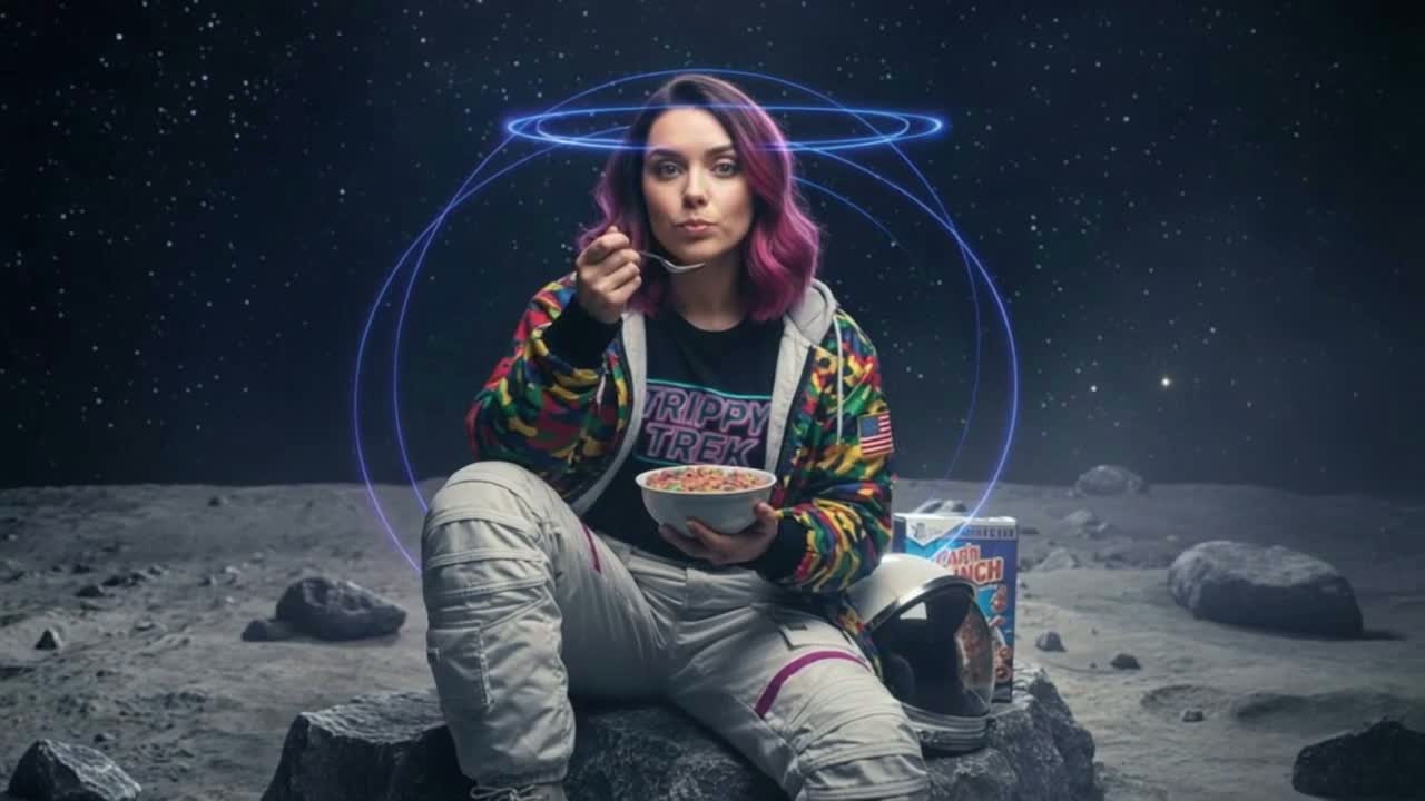 Theremin and banjo spark off each other over pulsing synthwave bass, setting a retro-futuristic indie rock foundation, Crisp electronic drums lock in a dance-rock beat while ethereal vocals float above, Violin riffs, cosmic synths, and pirate hip-hop punk verses energize the mix, New Wave and indie pop guitar lines twist among space rock effects, giving way to dynamic sci-fi cabaret bridges, Synth-pop hooks and psychedelic breakdowns evolve to a dramatic, 80s-soaked explosive finish, ‑folk, ‑country, ‑acoustic