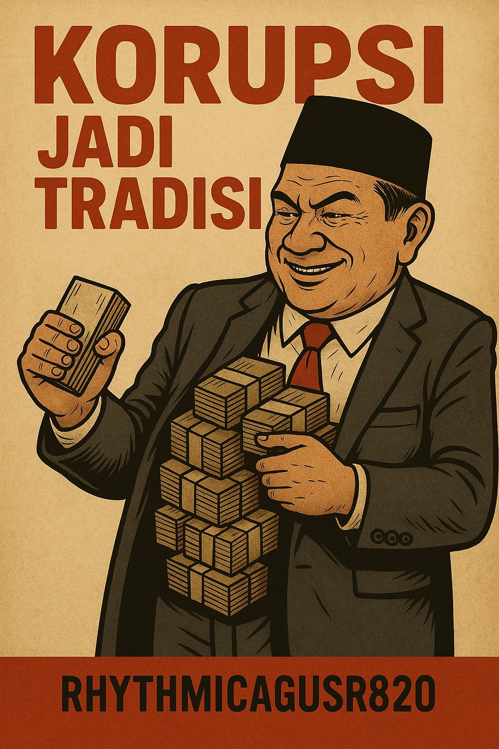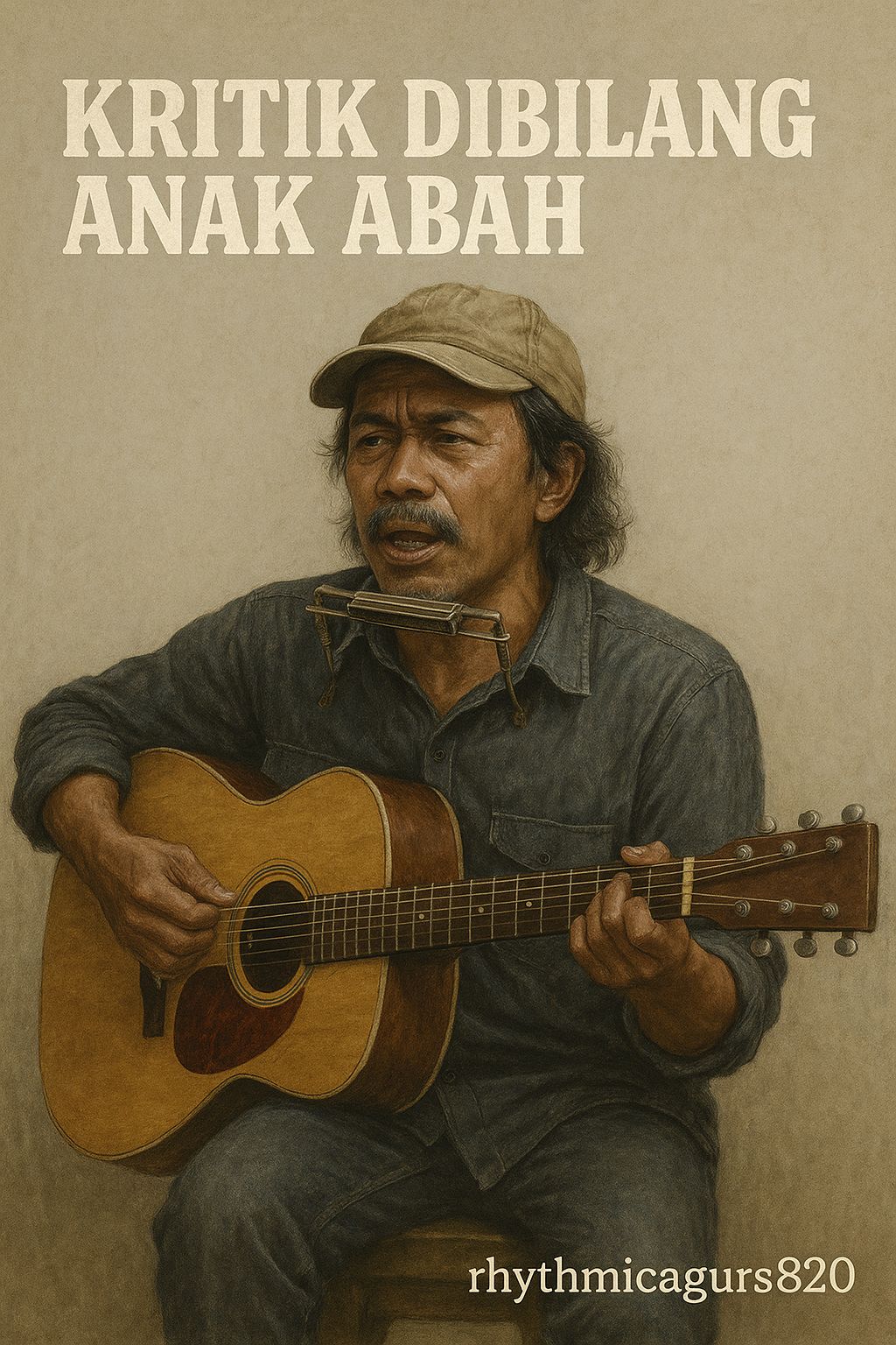], "prompt": "A satirical Indonesian pop-folk song with acoustic guitar strumming, light cajon rhythm, harmonica fills, and simple bass line, Vocals are male lead with a slightly sarcastic tone, half singing half storytelling, joined by backing chorus on the chorus for a folk-protest feel, Medium tempo (90-100 BPM), playful yet socially critical mood, reminiscent of folk street musicians, "
