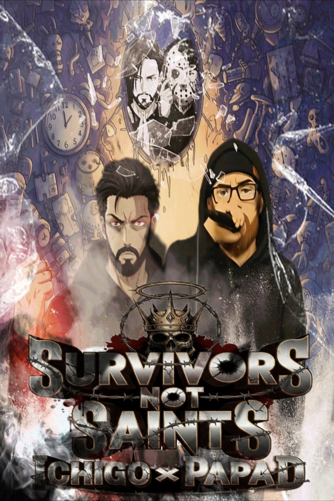 Cinematic Noir Rap duo, Ichigo and Papa D collaborate with a slow-burning trap foundation and dual vocal contrast, Ichigo delivers steady, mournful verses with a journalistic cadence—his tone is low, reflective, and emotionally restrained, layered over deep 808s, sparse hi-hats, and echoing snares, His bars are vivid and grounded, painting trauma with clarity and control, Papa erupts with chaotic, poetic energy—his flow is fragmented, percussive, and unpredictable, drenched in distortion and reverb to mirror fractured memory and emotional volatility, Haunting piano loops, reversed synths, and ambient textures drift like smoke, while ghostly vocal samples and silence create tension, The chorus is a ritual chant—“I’m a survivor, not a saint”—delivered with layered group vocals and a street gospel edge, This is survival music: haunted, honest, and heavy, where pain becomes scripture and every bar is a scar that speaks