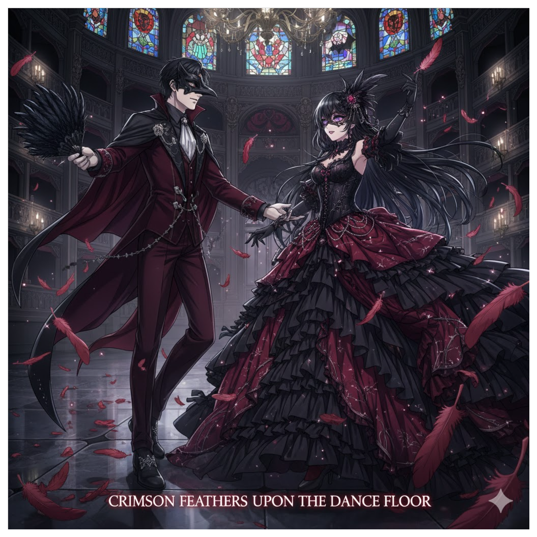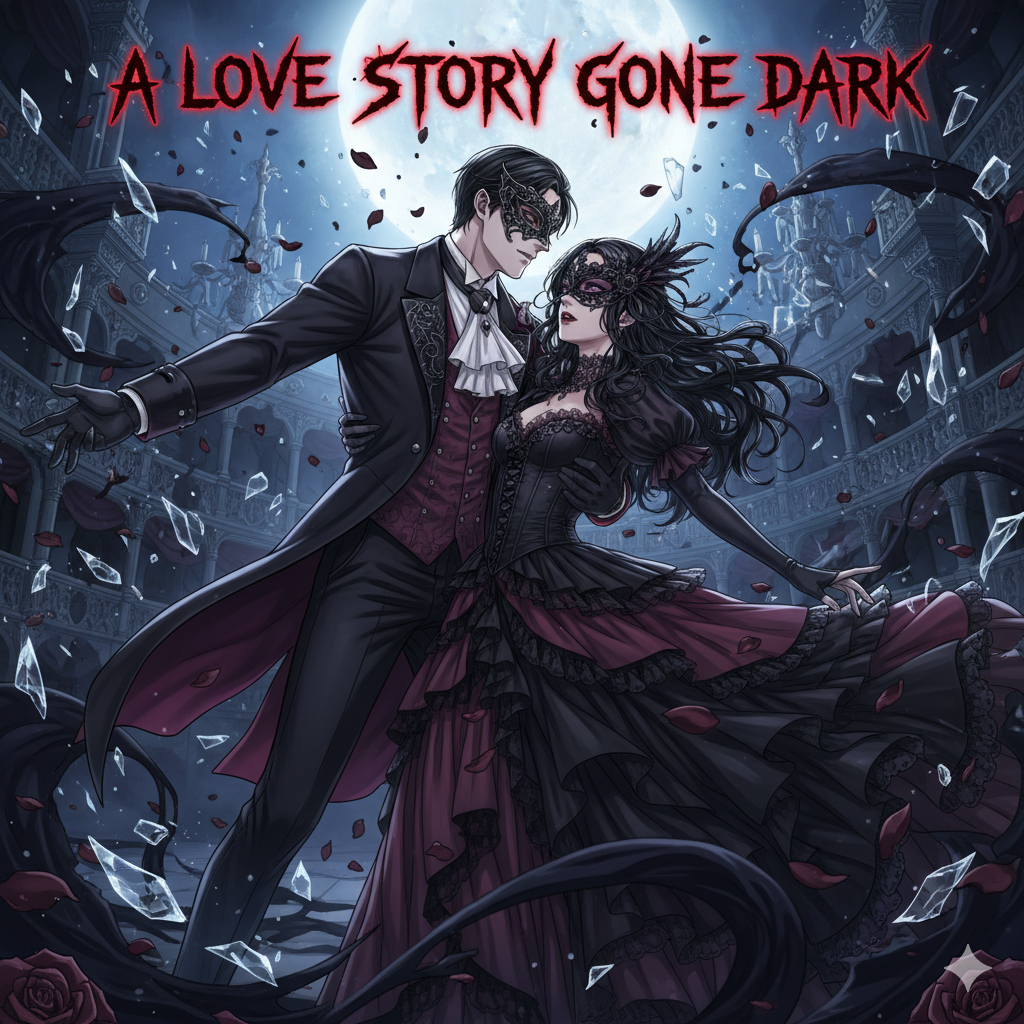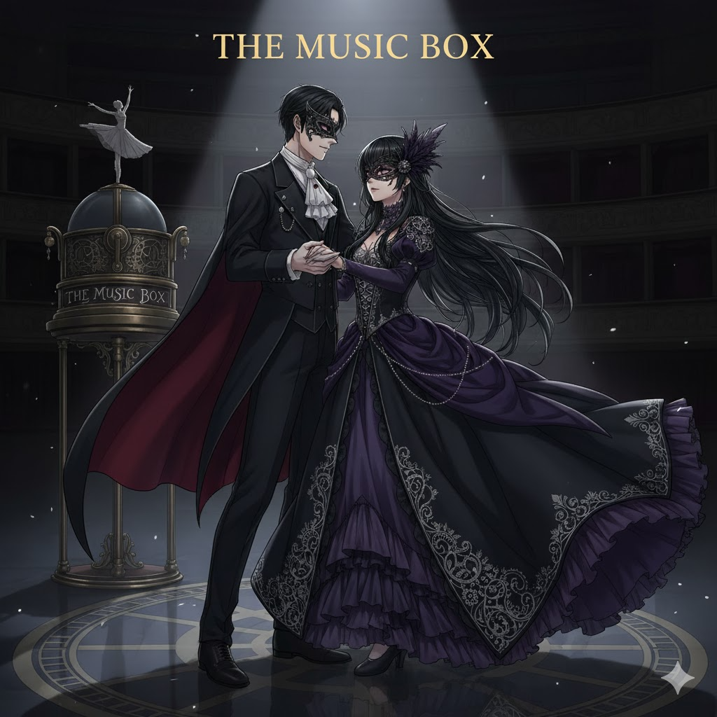 delicate music box accompaniment, layered with dark strings and ethereal textures, hauntingly beautiful, gothic, duet with male vocals c2-f4 and female vocals f3-f5, beautiful, female vocals, opera, male vocals