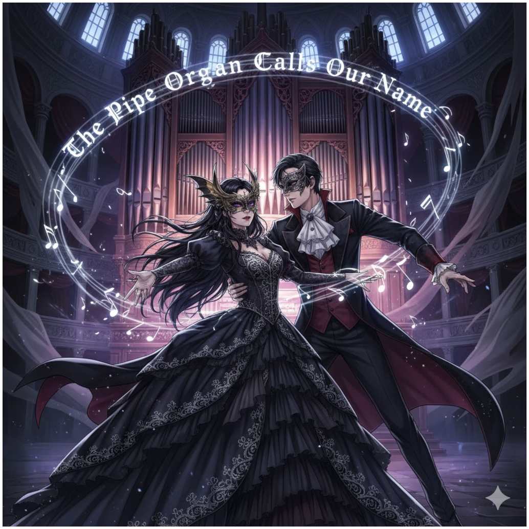 female vocals f3 to f5, male and female vocals, orchestral textures with strings and brass swells, heavy emphasis on the pipe organ as a central voice, gothic, male vocals c2 to f4, haunting, dark, opera, female vocals, male vocals, pipe organ
