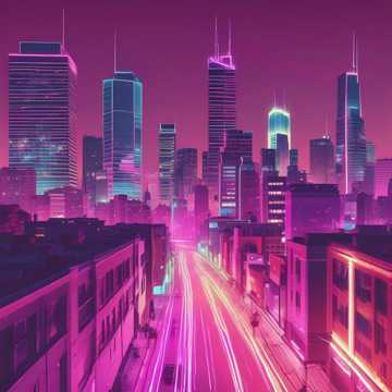 fast-paced city fusion with jazzy synths and funky bass, futuristic, electric piano, tight drums, neon city, 80s jazz-funk, urban night drive