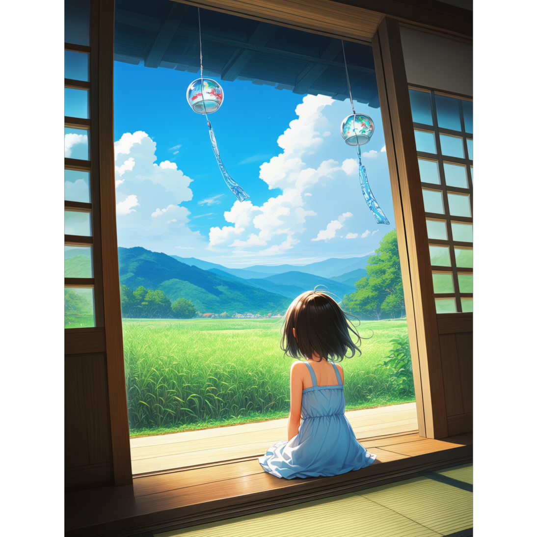peaceful Japanese ambient pop using traditional pentatonic scale (yo mode), [fusion enka style], featuring soft piano, shakuhachi, layered polyphonic piano, ambient cicadas and wind chimes SE, emotional overtone-rich vocals (high harmonic content), gentle taiko heartbeat rhythm, cinematic ambient atmosphere, BPM ~90, song follows structured flow: [Intro: ambient] → [Verse: quiet nature scene] → [Pre-Chorus: gentle build] → [Chorus: emotional swell with piano and koto] → [Bridge: instrumental ambient] → [Final Chorus: full resolution] → [Outro Chorus: soft emotional reprise with harmonic voice], clearly sounds, clearly lead voice