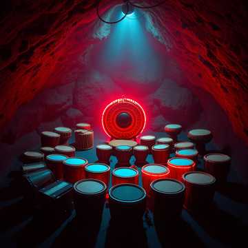 This percussion-driven piece starts with deep Taiko and resonant Timpani, layering in earthy Djembe and intricate Tabla for pulsing momentum, Textures build as Conga, bongos, frame drums, Marching Drums, Darbuka, and Hybrid Drums join, enriched by evolving patterns on powdery Bodhran, Pandiero, udu, and Basler, Energetic accents from snare, bass, tenor, tom-toms, and cymbals create dynamic shifts, while melodic figures thread through Iriquois, Zhanggu, and Yaqui drums, Gong, talking drum, Powwow Drum, and spinner drum punctuate transitions, with the Tambourine and foot drum adding brightness, The groove intensifies for a powerful, communal finale featuring the Hoop Drum beneath swirling layers