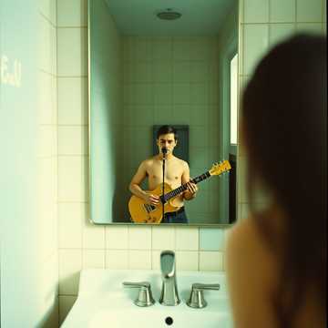 Raw and intimate, the song features a lone vocalist in a tiled bathroom, their voice reverberating alongside uneven, percussive acoustic guitar attempts at the complex, syncopated rhythms and dissonant chords typical of djent, with occasional offbeat strums adding awkward charm