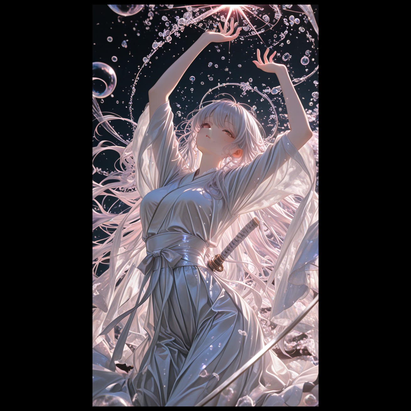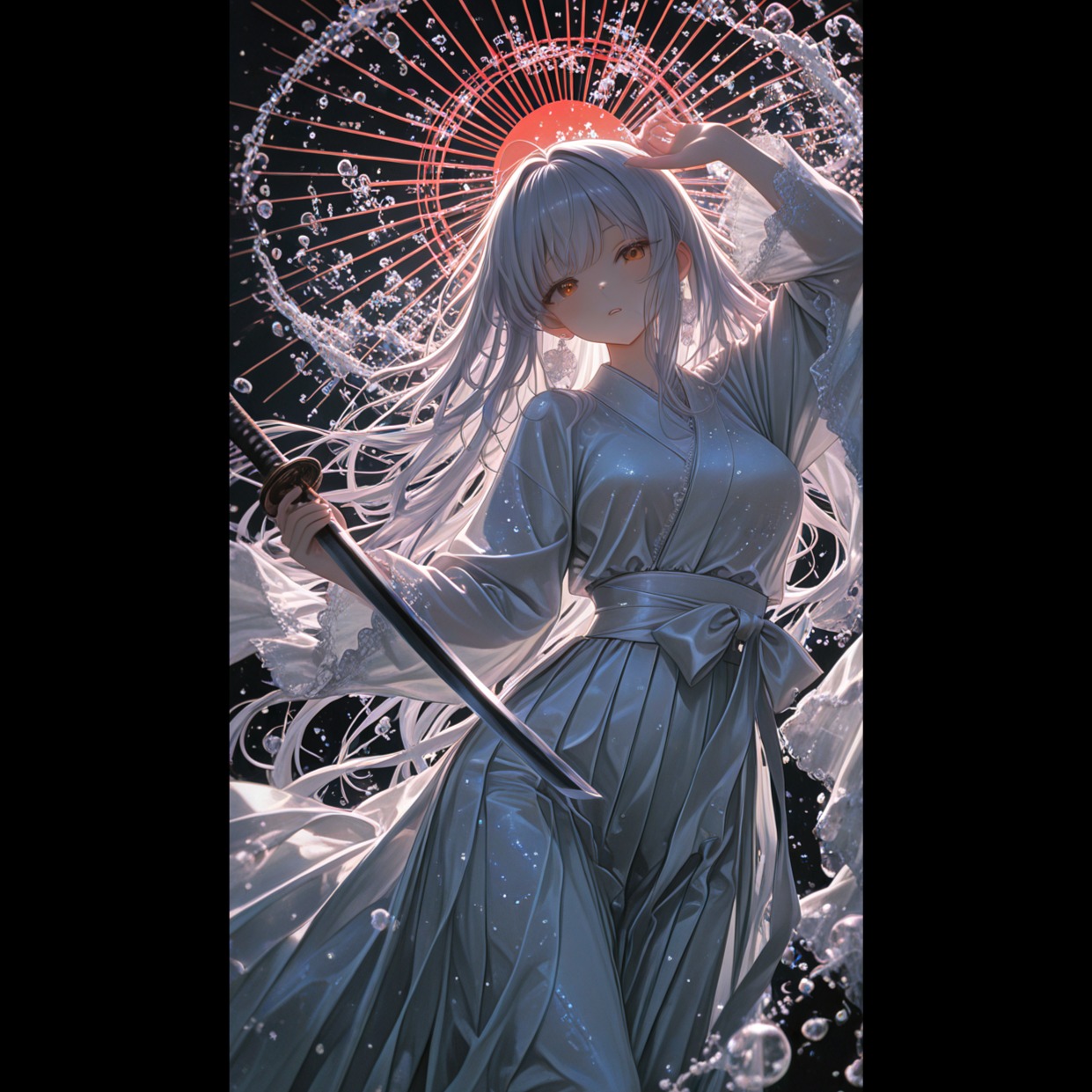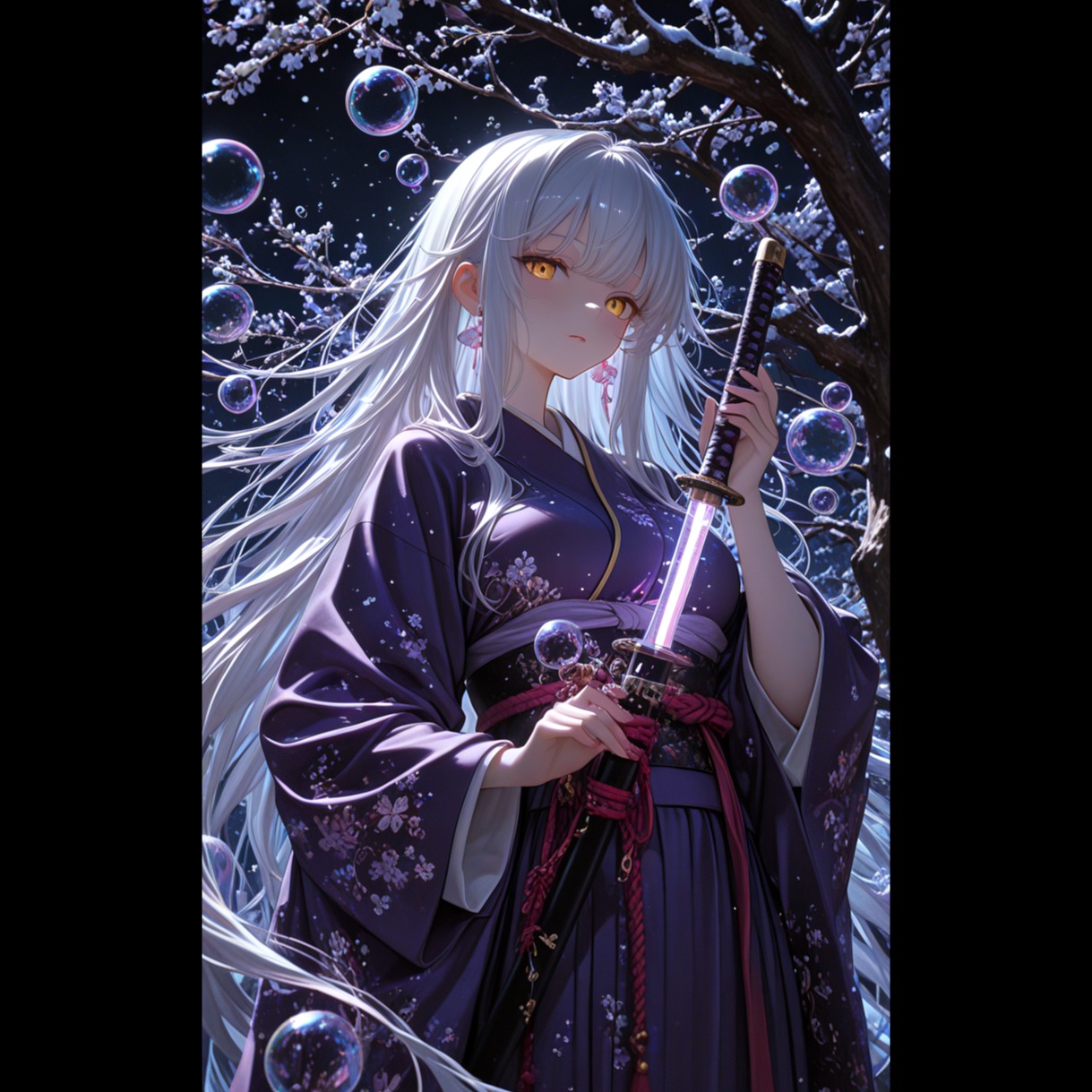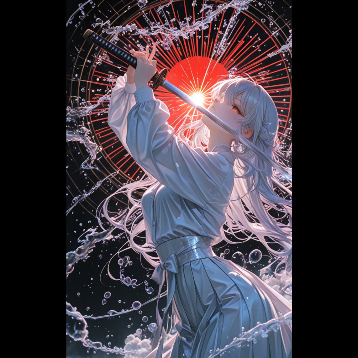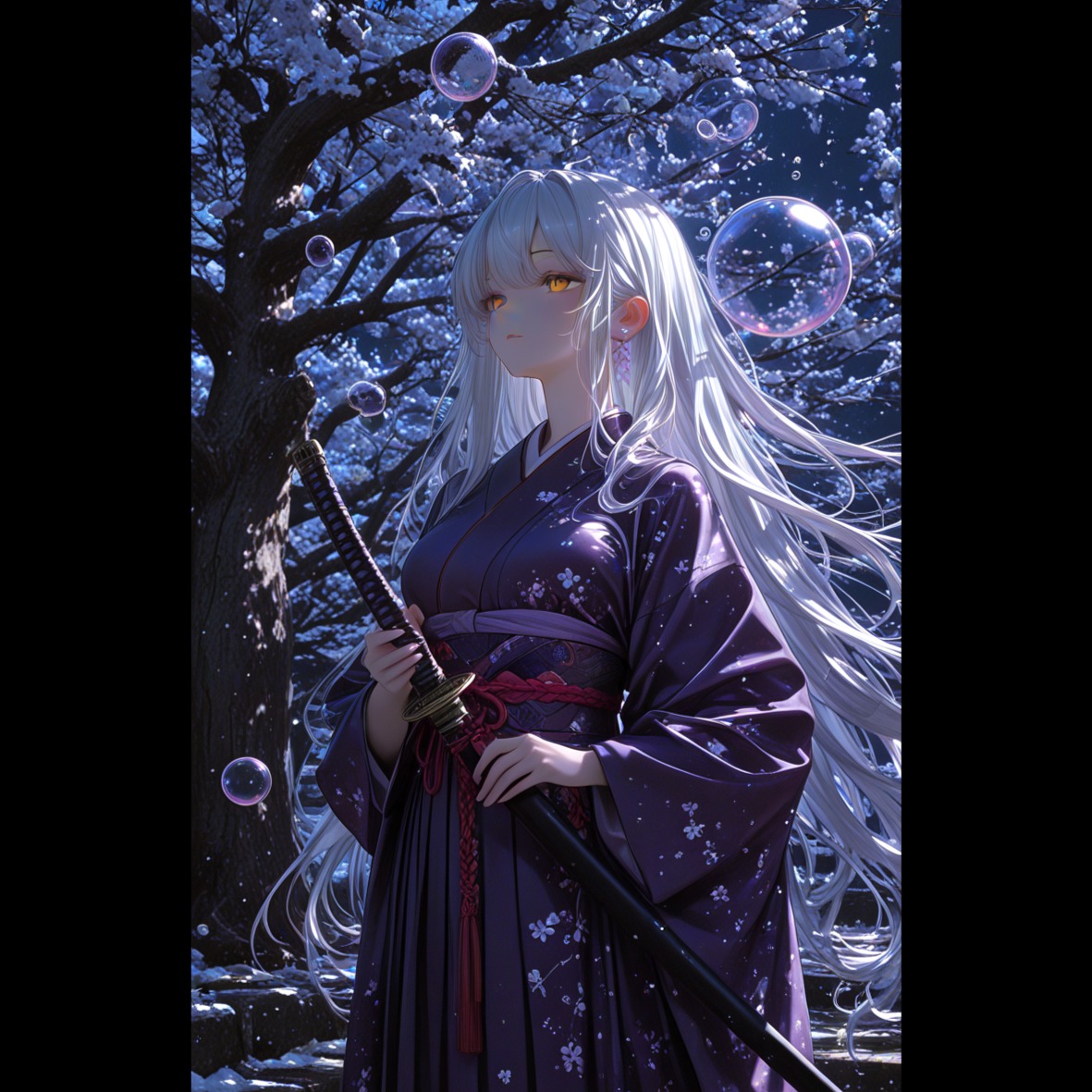 Style/Genre: Cinematic Orchestral with Traditional Japanese Instruments (Gagaku-inspired), Neo-Classical, Emotional and Grand, Instrumentation: Luscious strings section, deep orchestral percussion, delicate Koto arpeggios, a haunting Shakuhachi (bamboo flute) melody, and subtle Taiko drum accents for the "distant thunder, "