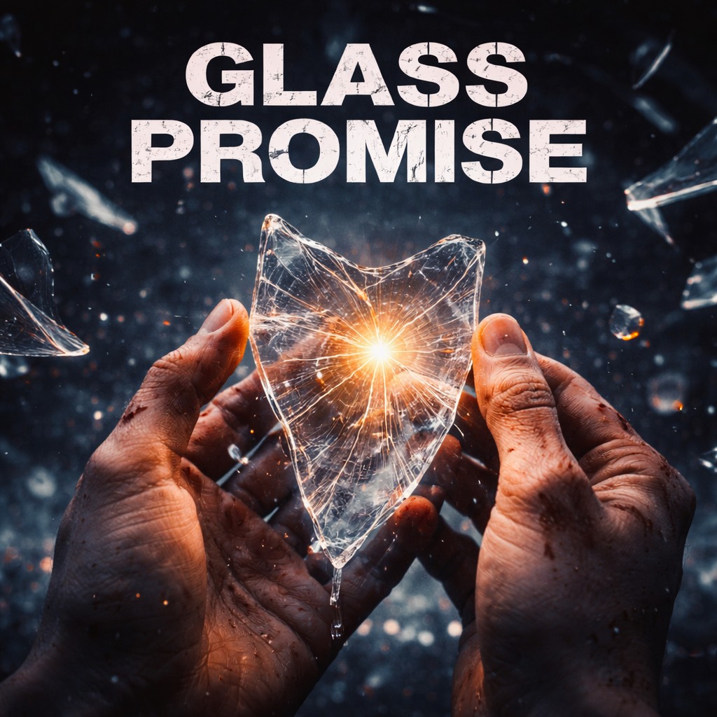 “Glass Promises” should sound intimate but dangerous, like beauty with a warning label, The production leans into moody R&B and alt-pop, opening with soft ambient textures, distant piano, and subtle vinyl hiss, Verses stay restrained with minimal drums, deep sub bass, and breathy vocals close to the listener, The chorus blooms emotionally but never explodes, layered harmonies shimmer like reflections on glass, then pull back sharply, Small distorted elements flicker in, symbolizing cracks forming, The bridge strips percussion entirely, letting vocals cut through raw and exposed before the final chorus returns heavier, colder, and resolved, The ending should feel clean but wounded, like walking away bleeding less than before