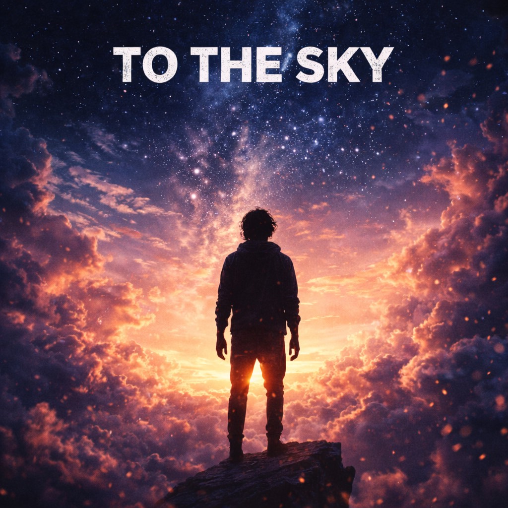 "to the Sky” should sound defiant, gritty, and triumphant without being flashy, The track opens with filtered drums and a low, pulsing bass that builds tension, Verses are rhythm-driven with tight percussion, subtle distortion, and confident but controlled vocals, The chorus hits wide and anthemic, built for crowd chants, with stacked vocals and heavy low-end that feels grounding rather than aggressive, Grit textures and vocal saturation increase as the song progresses, giving the sense of wear and resilience, The bridge pulls back to near silence before the final chorus returns stronger, like standing tall after the fight ends