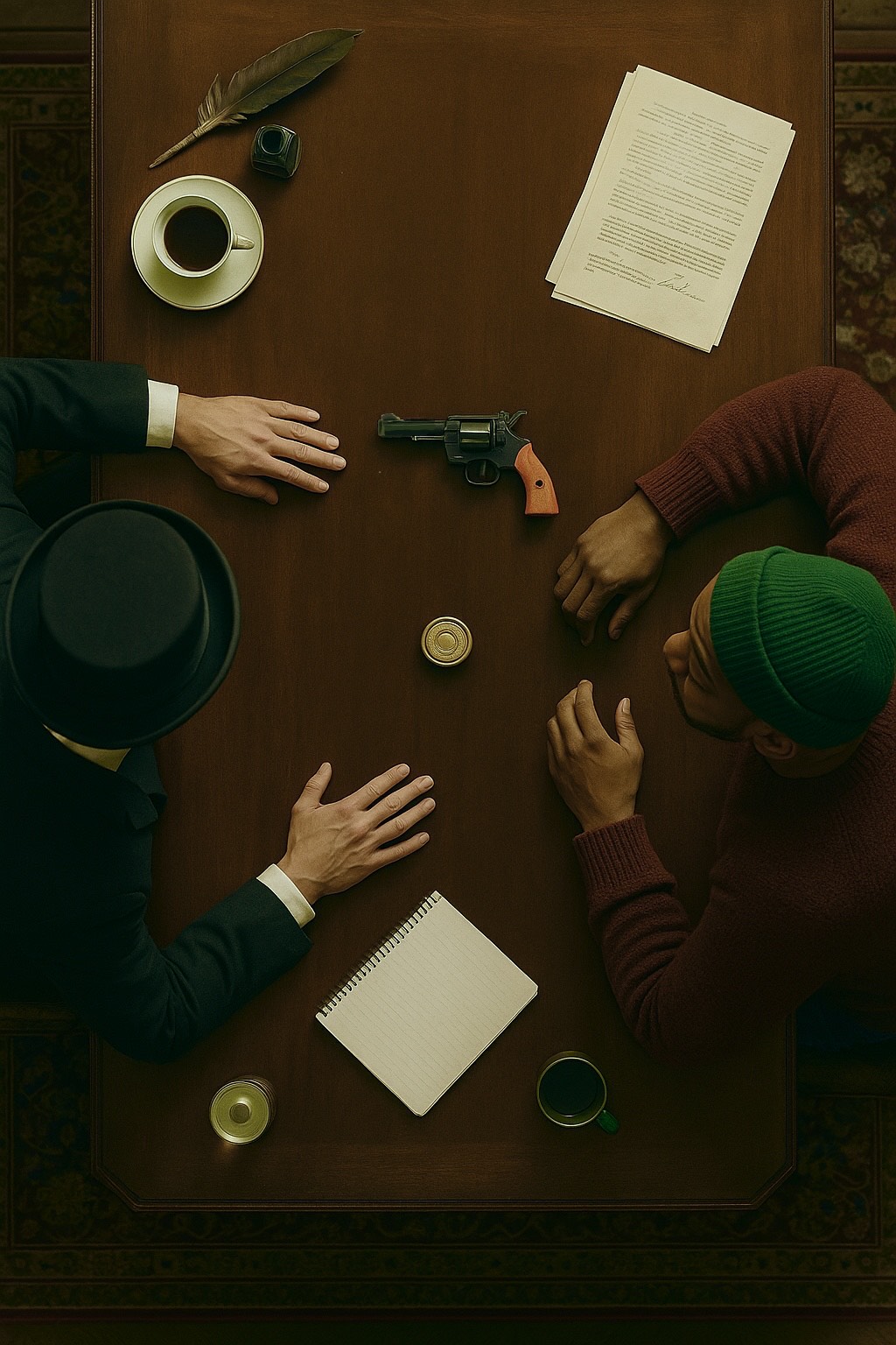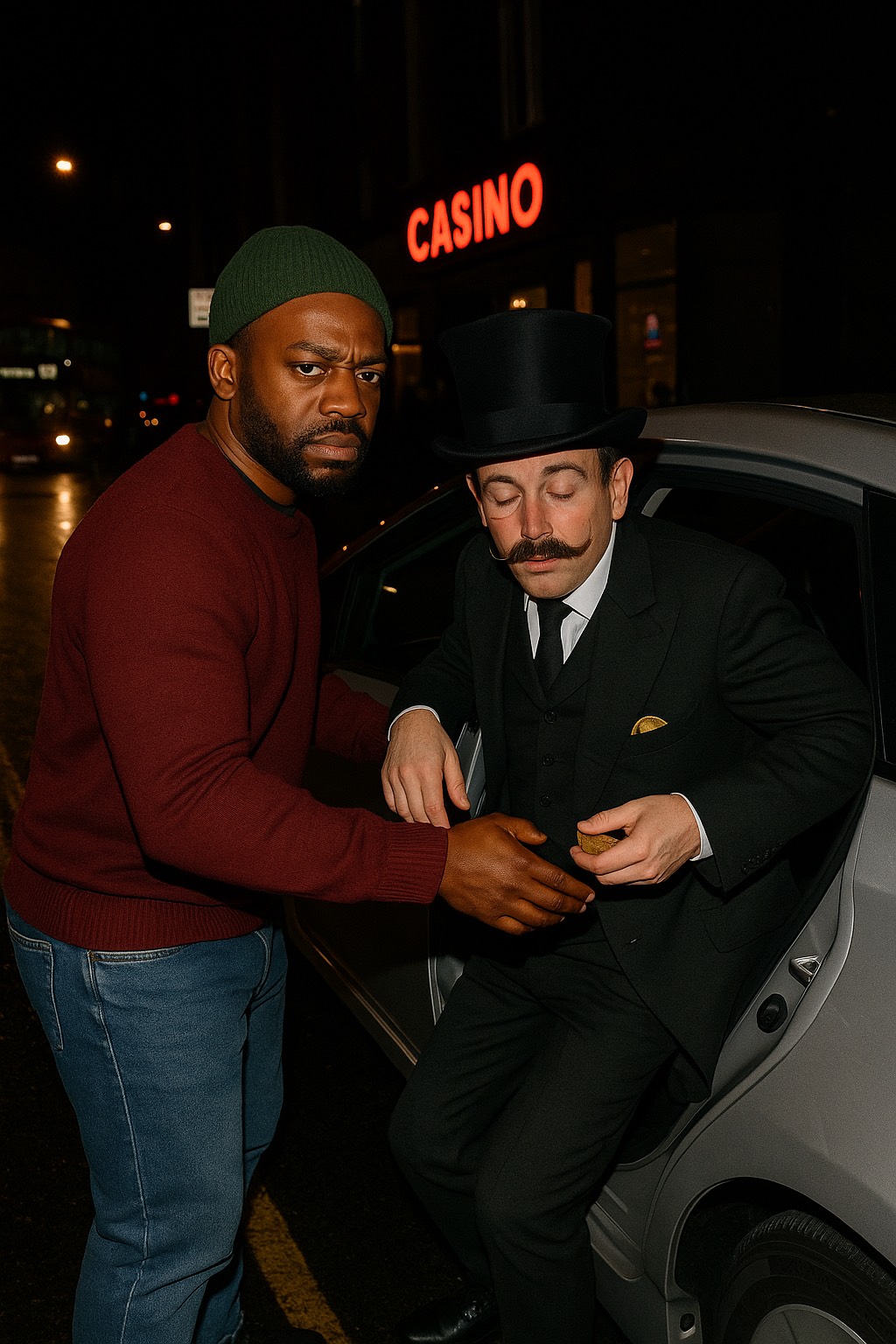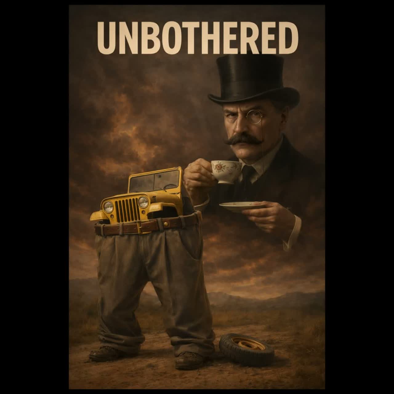 The track opens with atmospheric pads and sparse piano, setting a somber tone with vocoder basslines, Tight UK grime drums creep in, paired with haunting synth lines and moody textures, Rising tension leads to a heavy drop—substantial 808 bass and an aggressive, driving bassline dominate, propelling the energy skyward, The vocalist is a posh 1920s english gentleman with a slow rap style and solid flow