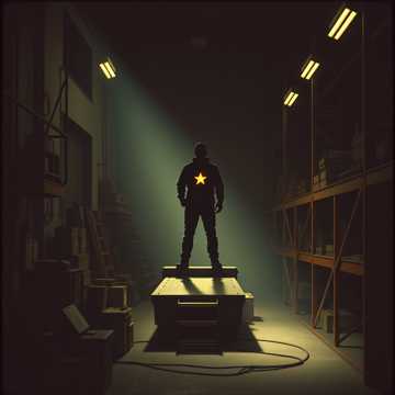 High-intensity trap-metal hybrid (~94 BPM), Distorted 808s layered with drop-tuned guitars, metallic snare slams, and industrial percussion (chain hits, pallet thuds), Reverse bass swells, glitch fills, and mechanical hums build manic pressure, Vocals: nasal-cut midrange grit, heavily compressed; syllables snapped like percussion; cadence alternates between rapid 32nd-note bursts and slow, taunting roast bars, Triple-stack layering—main dry center, ±12 ms doubles, hard-panned ad-libs, parallel distortion bus for bite, Tone: venomous, comedic, psychotic, Jersey dismantles his entire workplace through dark lyrical warfare, Lyrical energy: precision rage, black humor, and cathartic chaos — the sound of losing your mind intelligently