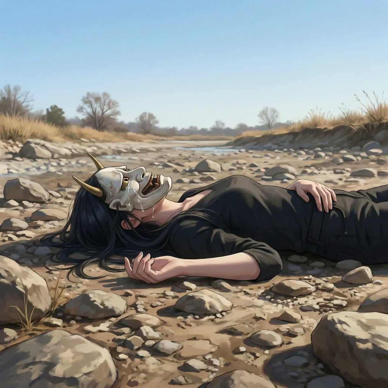 Vocals are spoken and whispered, delivered in a quiet, narrative style rather than melodic singing, The focus is on words, breath, and silence, creating a tense and contemplative atmosphere, ‑Strings, ‑shamisen