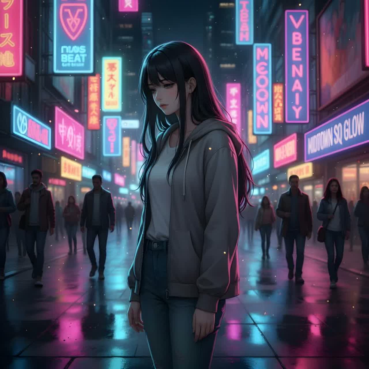 Instrumental: Electric guitar at the core, sharp and slightly ahead-of-beat strumming or muted picking to create urgency, Layer atmospheric synths and pads for depth, with dark minimal textures, Use steady electronic percussion: deep kick, crisp snaps, claps, subtle hi-hats, and synth bass for pulse, Keep rhythm hypnotic and driving, sparse but tense, Mood: Haunting, modern, urban, and restless, Mid-tempo around BPM106, groove-focused with an edgy minimal rock feel, Tension builds from restraint to explosive emotion, The sound should reflect identity vs anonymity conflict, pressing and emotional
