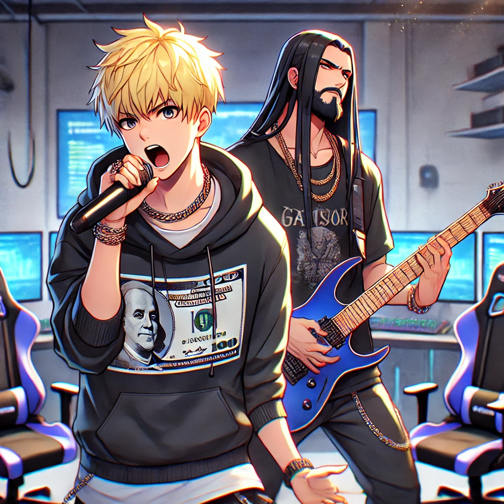 Male vocals, J-pop, Mixture music, Rock, Rap, Mid tempo, Up tempo, Dark, Bass Drums, Electric guitar, catchy melody, Angry, Whimsical, Intense, Emotional, Powerful, Japanese lyrics, youthful vocals, Harmony