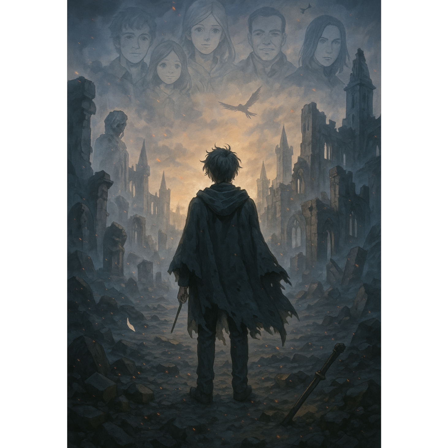 Anime-style sad ballad inspired by the last battle of Hogwarts