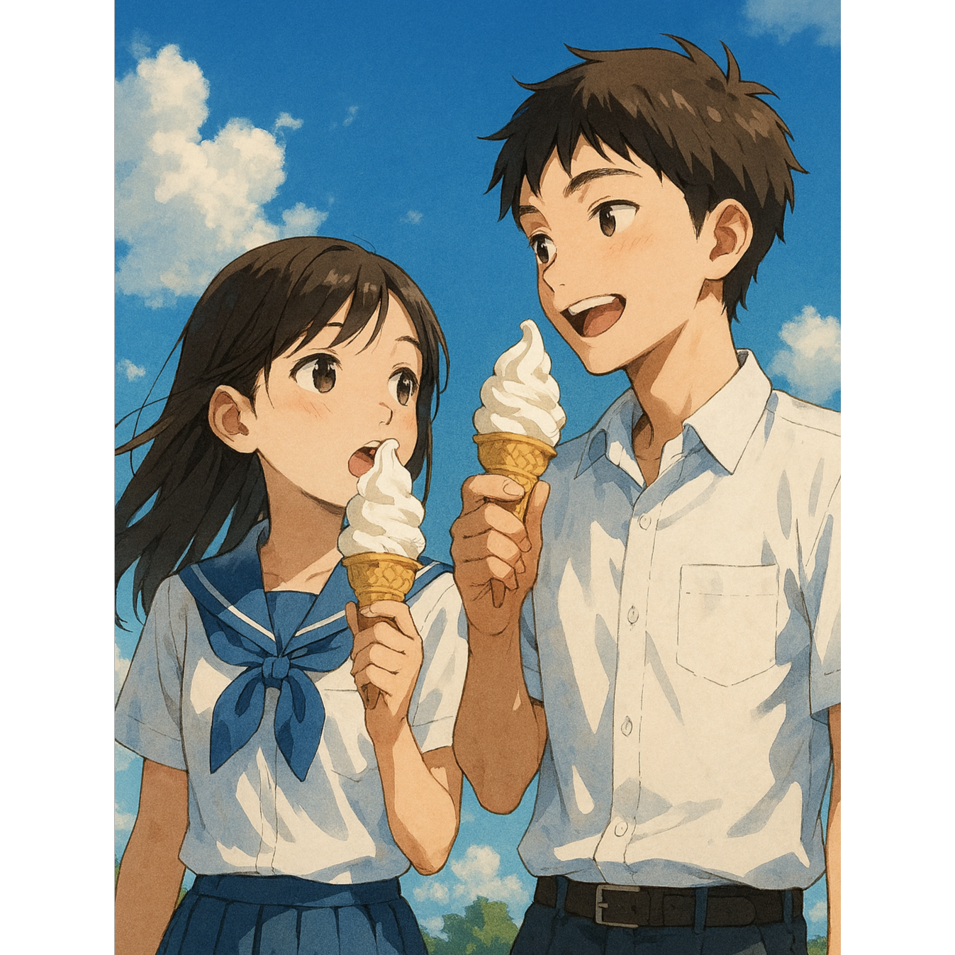 Japanese summer pop, two clean electric guitars and light drums, bright afternoon mood, gentle and nostalgic, female vocal, soft humming intro, minimal arrangement, indie pop band feel, not energetic, not EDM