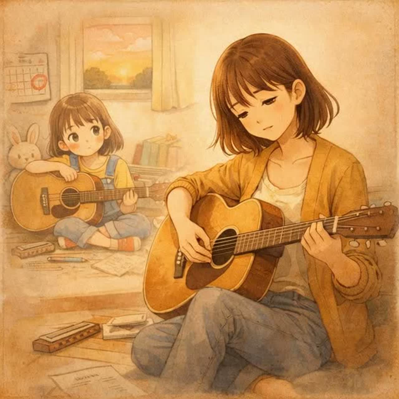 Japanese folk, 1970s style, acoustic guitar centered, no pop arrangement, no modern production, slow and steady tempo, intimate, diary-like atmosphere
