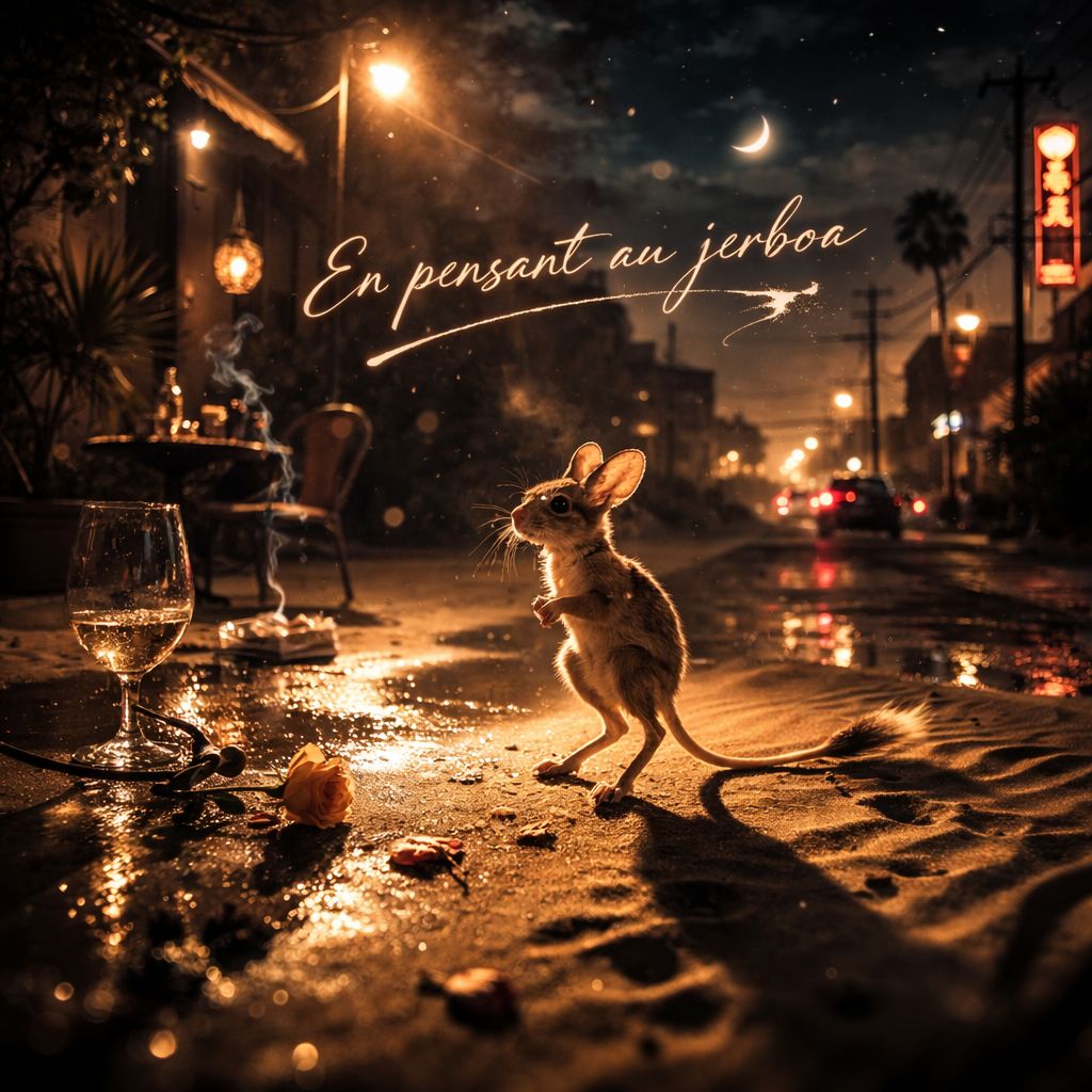 Long-form extended track with slow evolution over time, Highly melodic, expressive bassline acting as the primary lead, more dominant than any top melody, Crisp drum machine patterns with heavy syncopation and extreme dynamic shifts, sharp contrasts between tight minimal sections and explosive breaks, Relentless, manic scratching with aggressive turntable gestures and chaotic fills, Accordion phrases with light Parisian phrasing, Mellotron flute lines drifting softly above the rhythm, Warm Rhodes electric piano chords and gentle vibraphone motifs layered subtly, Soft, airy female humming textures: hm, tru-ru-ru, ta-ah, used as floating melodic fragments, Upper instruments remain smooth and restrained while the rhythm section stays hard, punchy, and intense, Contrast between delicate French bossa color and raw jungle break energy, ‑four on the floor, ‑root-note bass, ‑major key, ‑acoustic piano