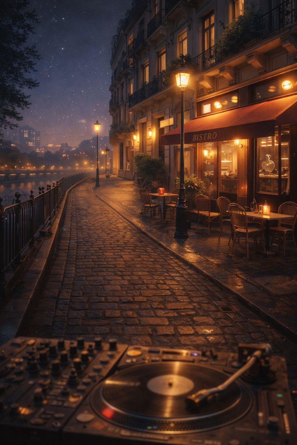 128BPM, Jungle, 2-step, UK garage, Brokenbeat, Rhythm-driven and syncopated groove for steady walking motion, with a melodic bassline, Vibraphone, Rhodes electric piano, and music box used as lead or subtle layers, French bossa–inspired harmonic language with warm, jazzy chords and light, elegant phrasing, Pizzicato-style string textures used for gentle rhythmic accents and melodic decoration, Soft, loop-friendly motifs focused on calm flow and relaxed forward motion, Deep but smooth bass with subtle melodic movement supporting the groove, Light, airy synth layers and minimal percussion for a soothing nocturnal atmosphere, DJ scratching used as a very subtle rhythmic accent, Warm, gentle, and relaxed character focused on groove and continuous motion, ‑major key, ‑root-note bass, ‑four-on-the-floor, ‑piano, ‑pad-only sections