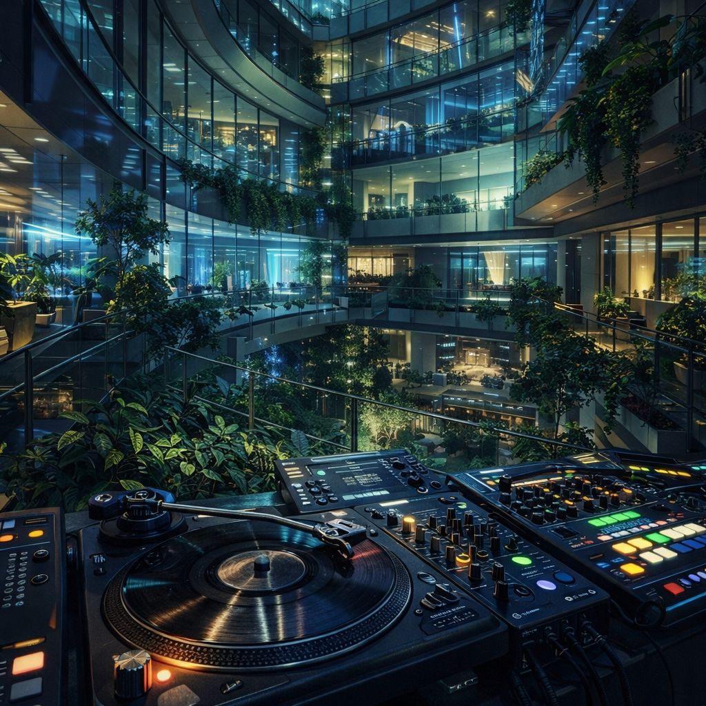 Concept: “A lounge atmosphere hollowed out by 157 BPM machinery, ”