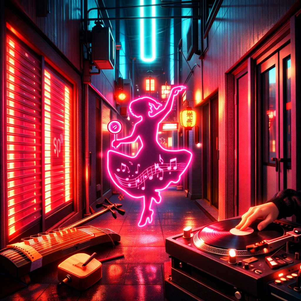 Electro swing interpretation filtered through Japanese traditional scales and timbres, Shakuhachi, koto, and shamisen provide the core melodic language, phrased with swing-like articulation and ornamental motion, Musicbox and vibraphone coexist as secondary leads, adding delicate metallic overtones and playful rhythmic sparkle, Melodies lean on pentatonic and in-scale movements, balancing familiarity with subtle strangeness, Rhodes supports quietly in the background, smoothing transitions between acoustic and electronic layers, 808-based rhythm drives an off-kilter two-step feel, clearly dance-derived yet rhythmically uncanny, Synth bass follows a melodic path, slightly syncopated and rhythmically displaced, reinforcing the swing distortion, Overall texture feels elegant and playful, while the groove remains structurally unusual, ‑four on the floor, ‑major key harmony, ‑root note bassline, ‑piano