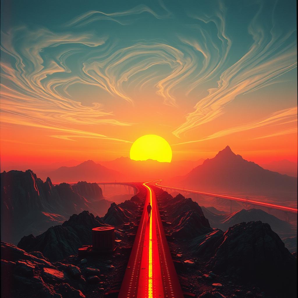 A cinematic and atmospheric progressive rock style, Slow-to-mid tempo (60–90 BPM) with spacious, hypnotic grooves, Features soulful, melodic electric guitar solos with echo and sustain, warm analog synths and organs, deep, moody basslines, and dynamic drumming that evolves gradually, Vocals are expressive, introspective, often layered with reverb and delay, conveying philosophical or emotional depth, Production emphasizes stereo space, ambient textures, and gradual build-ups leading to powerful climaxes, The mood is dreamy, melancholic, and existential — balancing beauty and tension, with moments of both calm reflection and soaring intensity