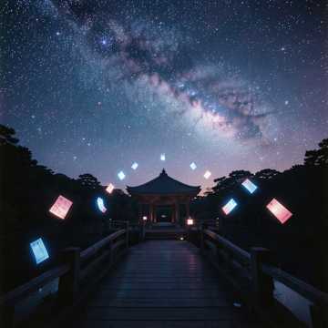 fast tempo, up-tempo, Low female vocals, Japanese traditional instruments (taiko, shamisen, shakuhachi) blended with upbeat Vocaloid pop style, sparkling melodies, energetic rhythms, ritual-themed aesthetic, chaotic timing, glowing shrine lights, studio recording, isolated environment, no audience, no crowd, no cheering, no shouts, no chanting, no call and response, no live performance, no concert, no background voices, no human noise, clean dry mix, no reverb from large space