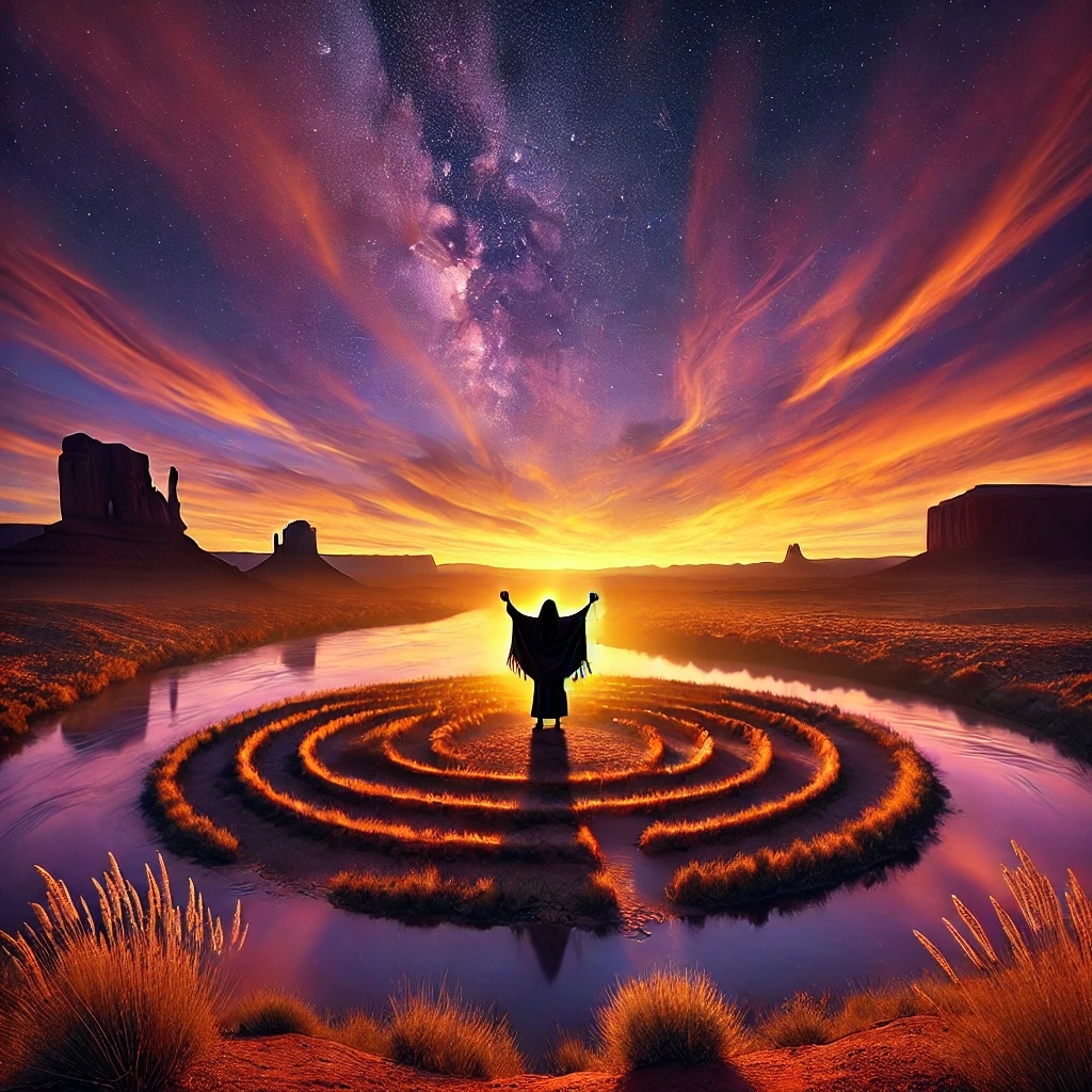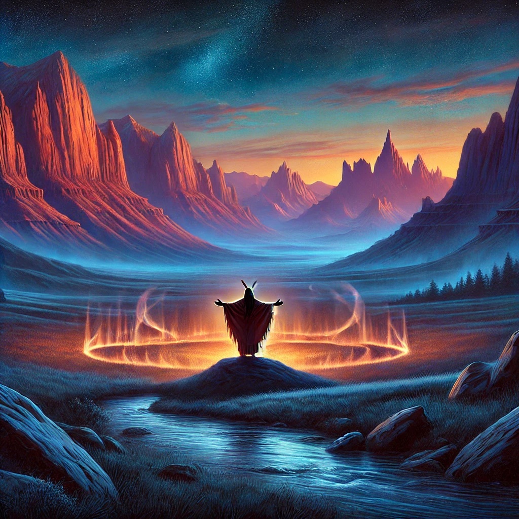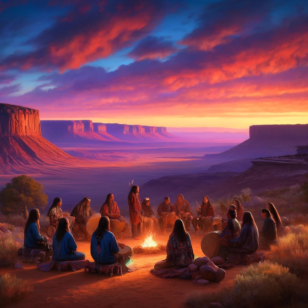 Native American, Navajo style, Edm, Naughty house, Dark bubblegum pop, Synths, deep drum beats, Navajo, percussion, Djembe, evoking light, love, and unity, spiritual, and atmospheric sound