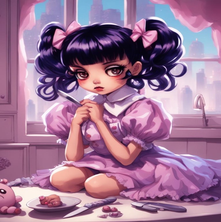 J Rock, Dark Pop, Psychedelic, Alt Pop, Horrorcore, Creepy-cute synths, Madness, Chaotic beats, Dark Rave, hypnotic harp, psychotic vibes, Manic vocals, Violins