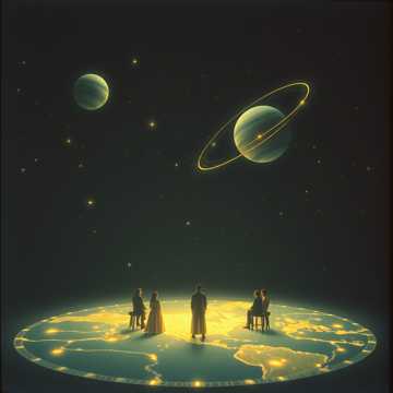 Spoken, gentle cinematic narrator with soft cosmic choir: