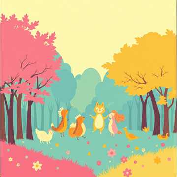 Cheerful children's choir, playful and bright, lively sing-along, harmonious voices, joyful rhythm, whimsical and uplifting