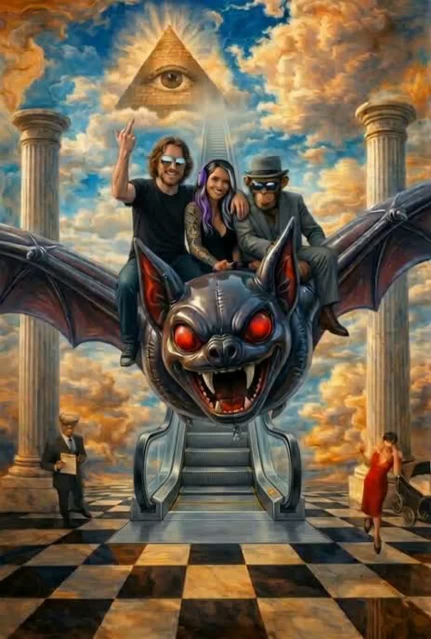 Raw early-2000s garage rock revival with blues-influenced alternative edge, driven by crunchy tube-amp electric guitar riffs and rhythmic chord stabs as the primary focal point, supported by simple punchy acoustic drums and tight root-note bass, Tempo around 115–125BPM, drop D tuning, Guitar tone features stacked overdrive and light fuzz with occasional wah accents and subtle flange texture during transitions, minimal reverb for a dry rehearsal room feel, Vocals are dynamic, slightly nasal, sarcastic and expressive with spoken-sung verses, chantable choruses, loose ad-libs, and double-tracked hooks, Production should feel analog, gritty, energetic, and imperfect, like a trio recorded in a rehearsal space with attitude and swagger, ‑Avoid polished pop production, ‑glossy modern rock sheen, ‑heavy compression, ‑auto-tuned vocals, ‑electronic drums, ‑synth layers, ‑trap beats, ‑orchestral elements, ‑cinematic pads, ‑clean hi-fi guitar tones, ‑djent-style distortion, ‑metal riffing, ‑progressive song structures, ‑overly complex drumming, ‑slap bass funk grooves, ‑vocal harmonies that sound choral or angelic, ‑and any overly smooth indie dream-pop textures, ‑Do not make it psychedelic, ‑ambient, ‑arena-rock grand, ‑or radio-pop clean, ‑Keep it raw, ‑minimal, ‑guitar-forward, ‑and gritty