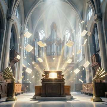 word whisper to soaring operatic tenor to full choral metal unison, Structure: single organ tone grows from silence to full cathedral