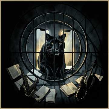 A dynamic fusion of modern jazz, free jazz, blues, industrial, dream dance edm and heavy metal, smooth jazz instrumentation with upright bass, brushed drums, and warm saxophone contrasts sudden shifts into distorted electric guitar riffs, double bass pedal drums, and powerful choral harmonies, Vocals alternate between whispered recitations, expressive jazz crooning and dramatic metal outbursts, Tempo and intensity change frequently to reflect inner tension and release, The arrangement evokes a sense of confinement and liberation, ending in a cathartic blend of solo saxophone and fading ambience