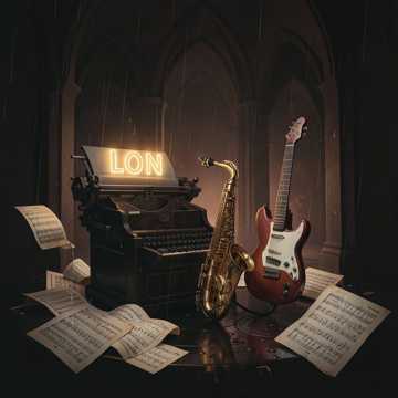 A dynamic fusion of modern jazz and heavy metal, Smooth jazz instrumentation with upright bass, brushed drums, and expressive saxophone contrasts with sudden shifts into powerful distorted guitar riffs and double pedal drums, Vocals range from whispered spoken word to soulful jazz singing and explosive rock choruses, Tempo and emotional intensity evolve fluidly, echoing the hypnotic pull of the Loreley and the grounding power of print, A lush arrangement with haunting melodies and an epic closing climax