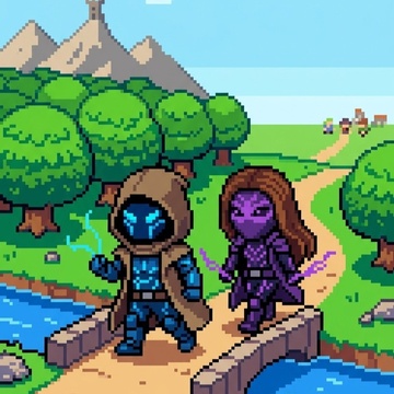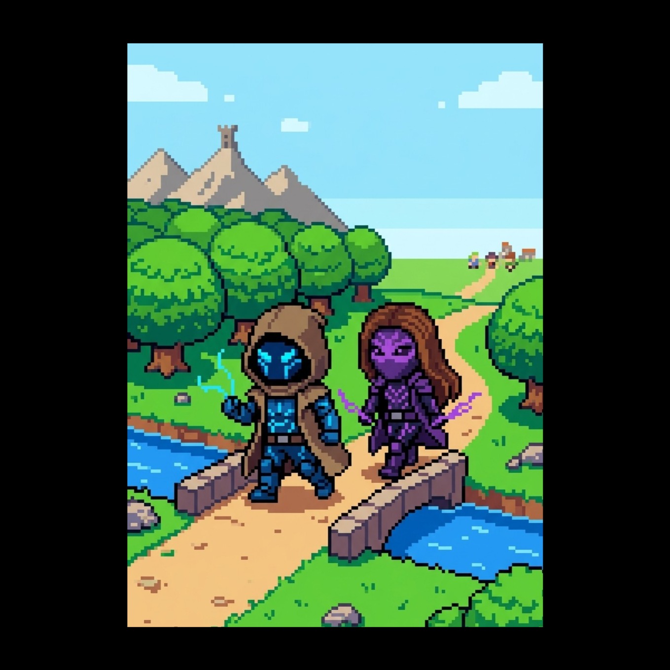 Instrumental fusion of 8-bit chiptune and metalcore, Drop C, Retro square-wave leads carry the main melody, combined with aggressive palm-muted chugs, tremolo riffs, and thick bass locked to kick, Drums alternate between fast double-kick bursts for metalcore intensity and simple, rhythmic percussion reflecting chiptune timing, Structure: intro with pure chiptune motif → verse blending chiptune melody over heavy rhythm → build section layering distorted guitars → main section where melody and metalcore collide → bridge with alternating chiptune arpeggios and crushing chugs → breakdown with both styles interwoven → final section merges melodic hooks and full-band aggression → outro fades with chiptune leads and heavy palm-muted chugs, Vibe: chaotic, uplifting, melodic, positive, happy fun adventure through a rock and roll gaming world, high-energy, nostalgic but aggressive, blending retro charm with modern metalcore punch