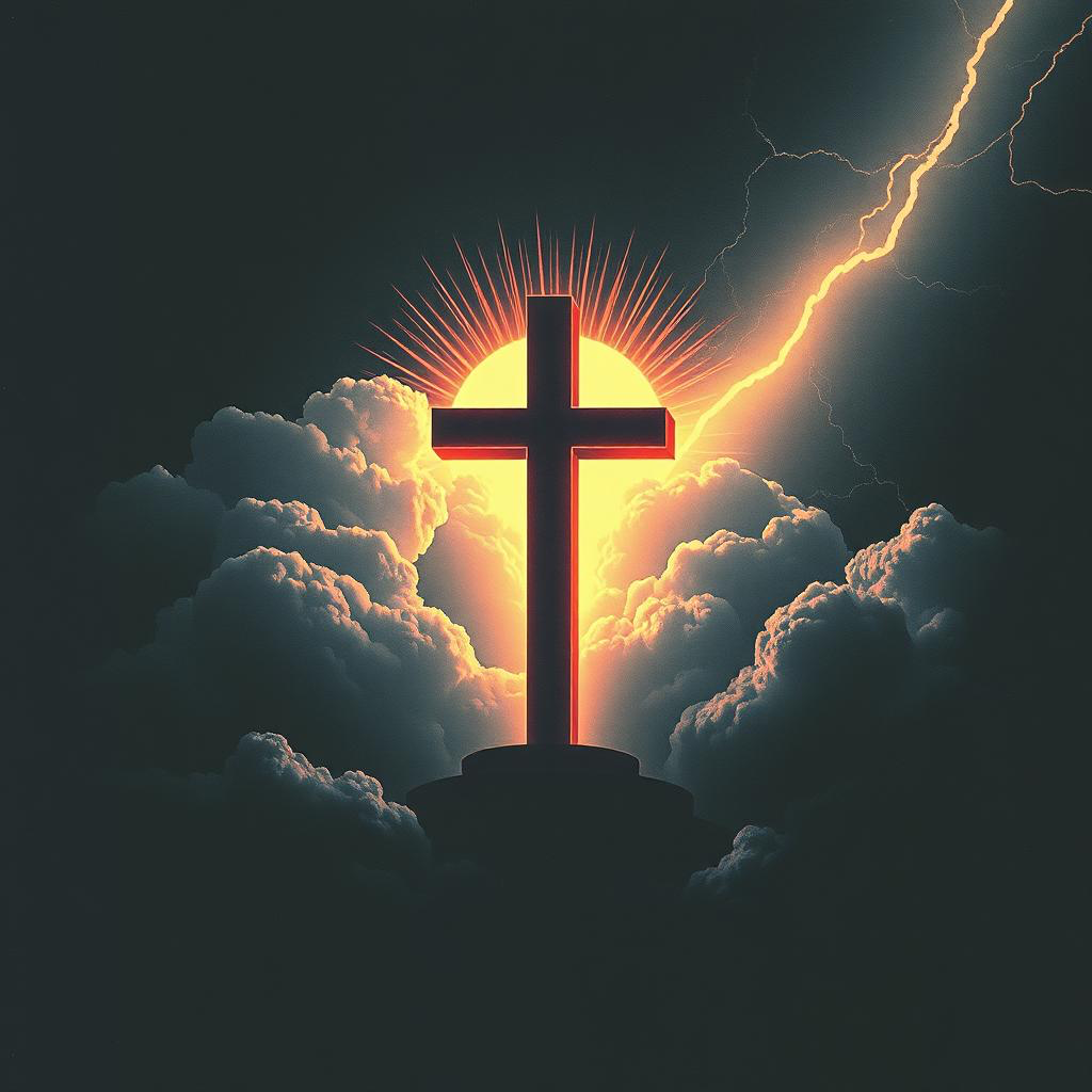 fuzzed-out desert rock meets psychedelic proto-punk, Heavy but groovy guitar riffs, driving bass, and reverb-soaked lead lines, Heavy overdriven instrumental parts, Trippy cosmic synth textures layered with pounding drums, Male vocals with gritty, charismatic detached delivery & rock'n roll swagger, Upbeat tempo around 150 BPM, swirling guitar delays, vintage analog synth FX, and thumping desert drums, A spaced-out anthem about divine arrival, cosmic judgment, and ancient prophecy, Hooky choruses, hypnotic verses, and breaks with swirling FX, Imagine a meteor storm rolling into the desert night, Call-and-response backings, technical immersive instrumental parts, ‑commercial edge, ‑pop sound, ‑happy, ‑sweet